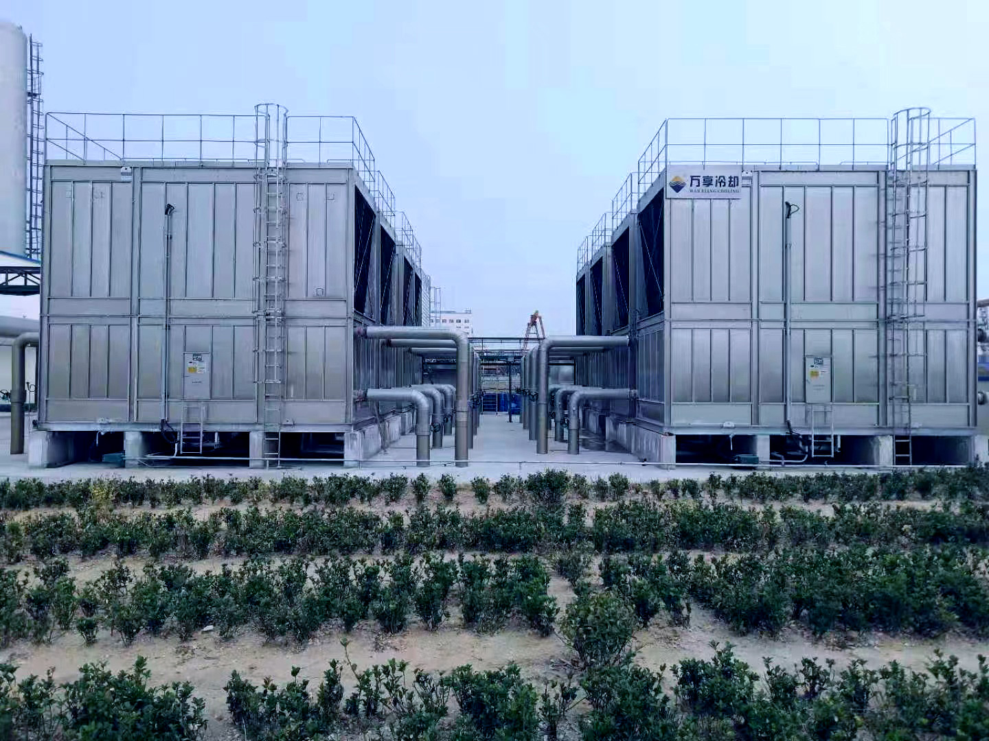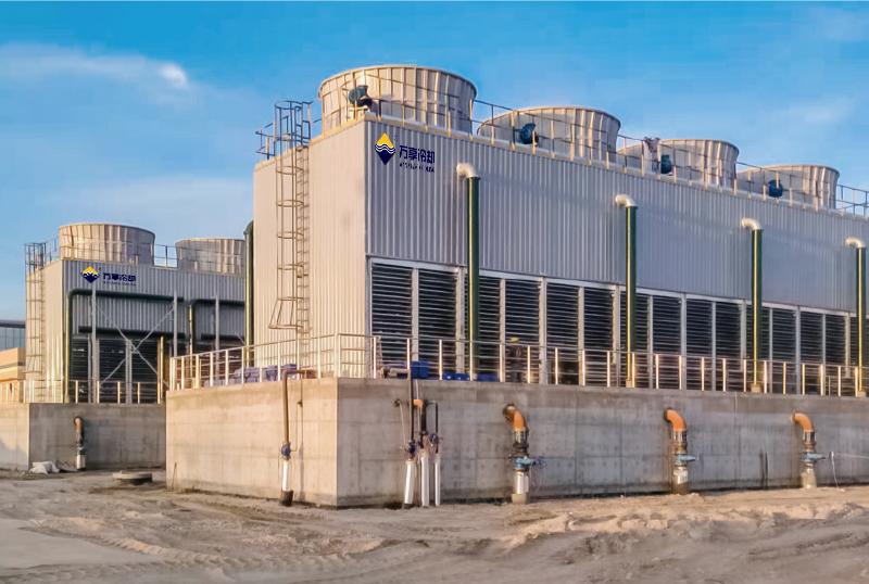 在石化行业,冷却塔设备应用于塔器、换热器、反应器等主体装置和压缩机组,通常循环水量大、水质要求高、水温要求严格,经CTI认证的闭式冷却塔设备能更好满足该工艺需求。万享大型闭塔产品被用于杰瑞集团LNG冷剂压缩机组,稳定高效的换热能力降低了整体运行功耗。