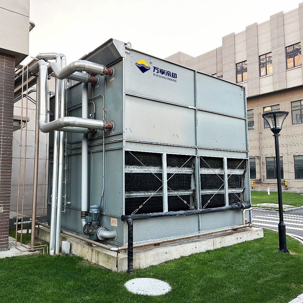 贵州茅台酒股份中试系统能源站项目,采用我司两台经CQC节能认证、CE认证和CTI热力性能认证的FBHL-434QL闭式冷却塔,单台标况下冷却能力达到433吨每小时。
